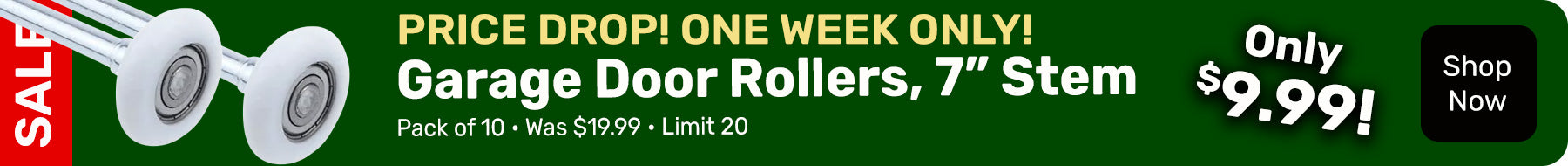 2" Roller, 6200ZZ Bearing Extra Quiet Nylon Garage Door Roller, 7" Stem, Pack of 10 Black Series
